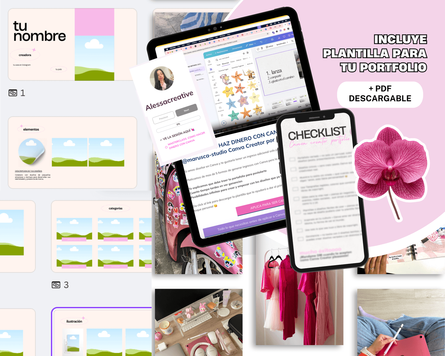 Plantilla editable para crear tu portafolio y postularte HOY MISMO como Canva Creator.